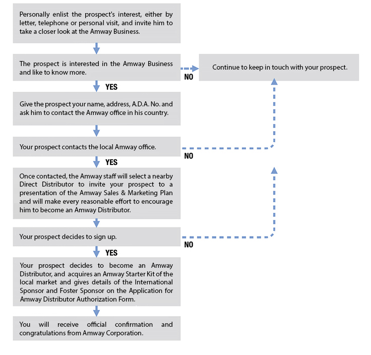 - Contact the local Amway office before you personally begin prospecting and sponsoring. Variations in local legal requirements and cultural perspectives should be clearly understood before you initiate any sponsoring activity.